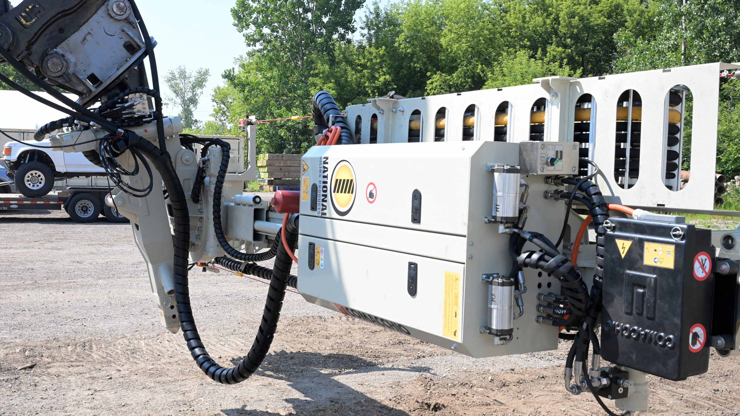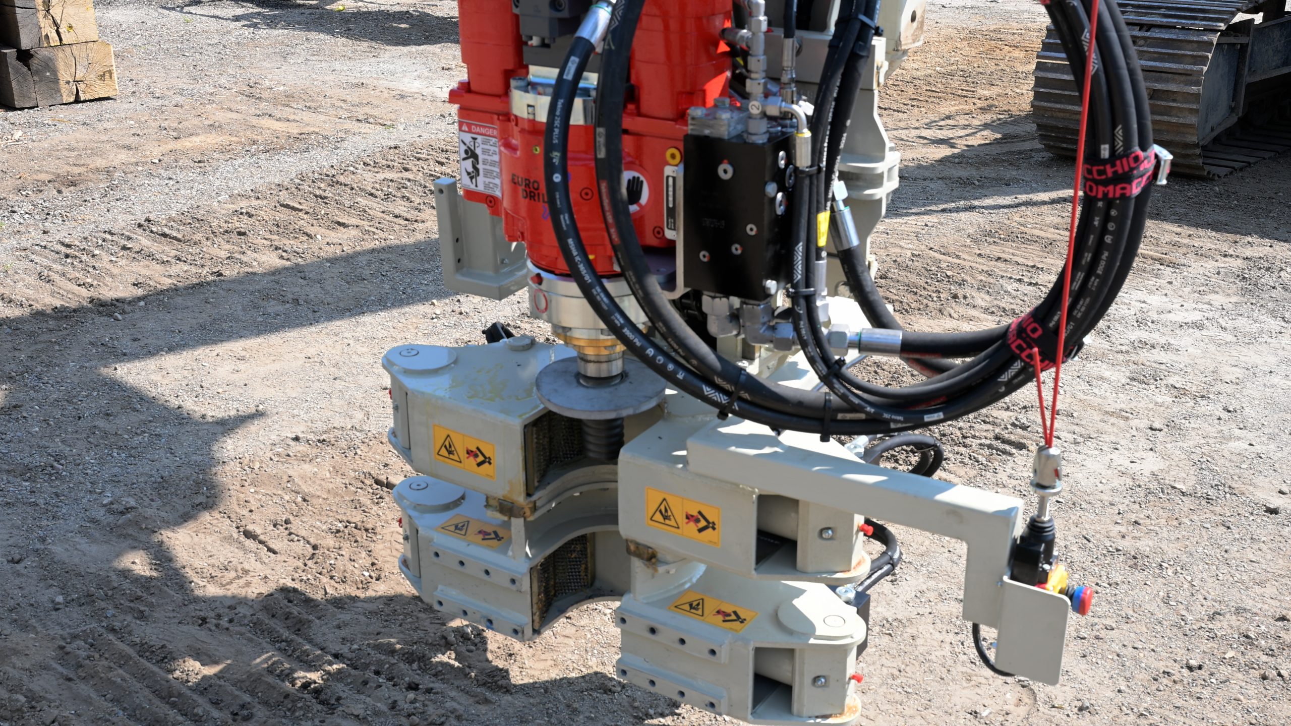• Mounts on a 15-ton excavator, enabling access to hard-to-reach or sloped sites.